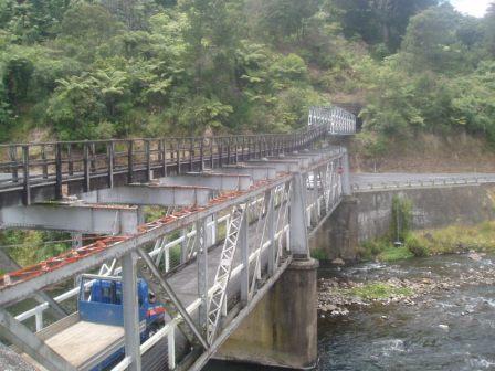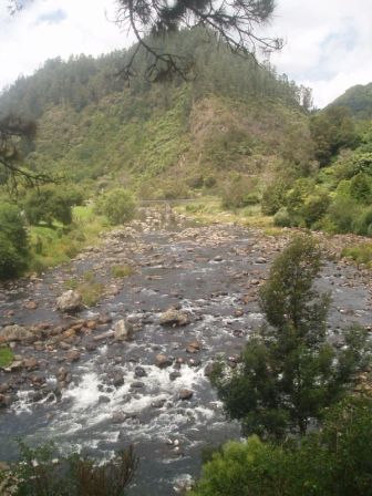 The next part of the hike took me up to a ridge where I could see a giant red crater spewing gas, perfectly clear blue and green lakes, and mountains covered in snow. My side trip put me in danger of missing the last bus of the night, so I ran the last 10kms (all downhill along a mountain stream and then through a dense forest), hurdling over the hundreds of old people who had managed to pass me again. I finished the course in a record 4.5 hours and grabbed the early bus back to town; I still had some energy left so I decided to move on to Taumarunui. A hot German girl staying in my hostel had led me to believe that hitchhiking was fast and easy, but no one wanted to pick up a guy and his bike; after an hour of waiting where dozens of SUVs and campers had passed me, a station wagon pulled over and took me 5 kms over a mountain to the next town up. Here, I tried to grab a ride for the next 50kms, but with no takers, I was forced to start peddling.
