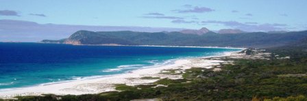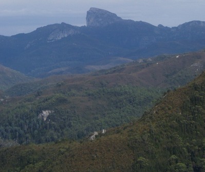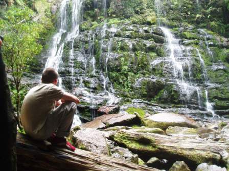 We were up and moving before 7 the next morning (since reception may have taken issue with our use of their lot) and were soon having breakfast on the beach. Leaving the coast, we passed into the Franklin River National Park; we made a bushwalk to a lush waterfall and another to the top of a hill where we could view all of the surrounding peaks; on our final walk of the day, we ventured into platypus territory, scanning the lake waters and poking sticks into burrows, but sadly, we never managed to turn up one of the little egg-laying freaks. From the final park, we drove into the night, moving through a string of villages that rarely had more than a few houses and a single pub. Arriving in Hobart around 9, we checked into the pub/hotel where I had stayed on my first “night"; a band was playing til past midnight, but I was sufficiently exhausted to pass out despite the shaking floor and deafening tones as they banged out “Like a Rolling Stone" directly below. My driver seemed reluctant to get up at 5 in the morning, so I took the AirBus and by 7 was soaring back to Sydney.