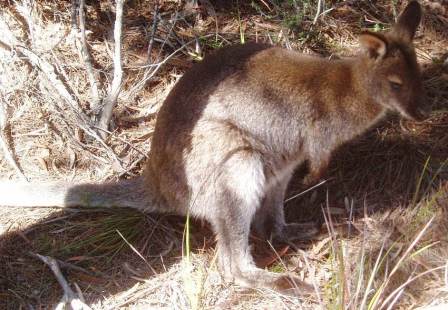The sun had set so we made our way northward to a town that promised accommodation; leaving the peninsula, we had the choice of taking the highway 50km out of the way, or taking a direct dirt road straight through the forest. We opted for the latter, but were quickly realizing that ours may have been the wrong vehicle for this island – as we bounced along the varied surface, our engine had the annoying habit of abruptly shutting off, and after 20km, the speedometer dropped to zero where it would remain for the rest of the trip (woohoo! no mileage surcharges). The drive was a bit unnerving as we had no mobile coverage and we saw a total of one other car for the 40km stretch. We ran across (and occasionally over) a number of animals including several pademelons, a few wallabies, some wombats, and one of the infamous devils; in one spot, we found a scene of utter carnage where a wallaby and wombat had evidently been conversing when an SUV had come along and ploughed over both of them.