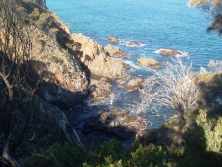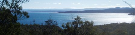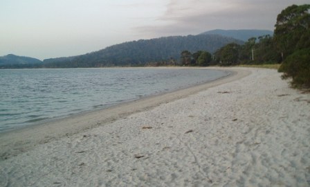 It was a bit hard to get across to my roommate that we should take advantage of the early morning daylight hours (it gets light here at 5:30) and we didn't get moving til after 10. We went north to Coles Bay and the Freycinet Peninsula; here we paid the exorbitant $20 national park fee (so as to avoid a possible $25 fine) and hiked to Wineglass Bay – here a pristine beach awaited us among the mountains.