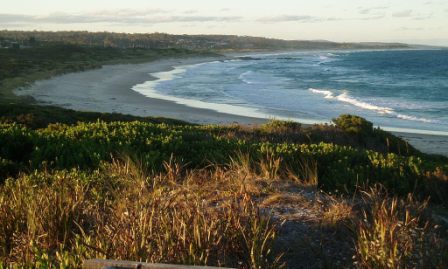We drove up to Bicheno (along the way our car's fuel gauge stoped working); this was “Tasmania's tidiest town" whose main attraction was the nightly march of the fairy penguins up the beach; since it was still a few hours til dusk, we stopped only long enough to climb on some rocks and empty our garbage bag onto their spotless streets and then moved on.