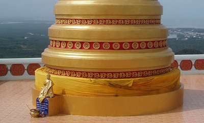 In the morning, I took a nearly empty, constantly twisting road through the mountains back in the direction of Krabi. On the way into town I visited the Tiger Cave Temple that sat several thousand feet above the surrounding landscape on an abrupt chunk of rock. Unlike in Kanchanaburi, they didn't have live tigers for guests to play with (it would've probably been quite a trick to get them up the 900-step staircase), but there were plenty of belligerent monkeys that would sit in the dead center of a step and force me to swing up the banisters to the upper levels. As could be expected, the views from the top were pretty incredible, and after I had regained consciousness following the ascent, I was inclined to stare out over the surrounding landscape and hold off on the return trip as long as possible.