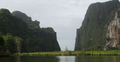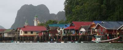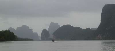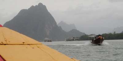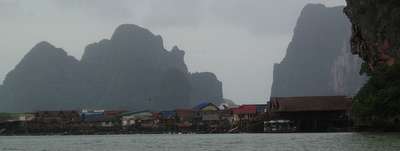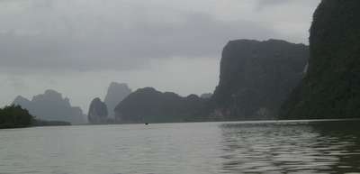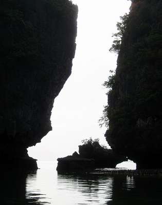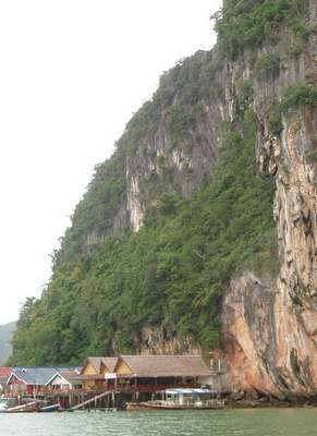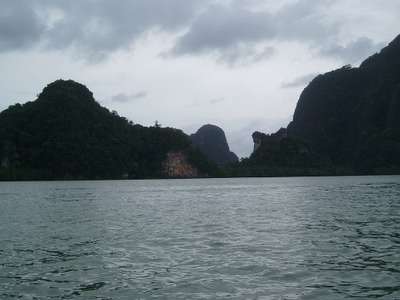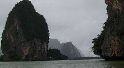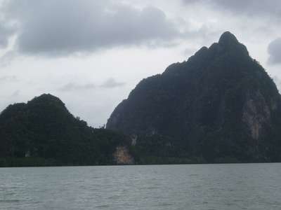 The next morning, I set off at the crack of dawn for the pier where I could supposedly arrange a boat trip to the bay. Unfortunately, the signage was at its usual standard and I ended up in some random fishing village rather than the tourist port. The locals were more than happy to rent me a boat and were quite insistent that no other tourists would arrive to share the costs (they didn't bother to mention why) so I ended up getting a private trip on a long-tailed boat for 700 baht – this would've been quite a decent deal (the going rate being 1800) had I actually had any desire to have my own boat. We visited a Muslim fishing village where houses on stilts backed up against a sheer limestone wall; it seemed a bit over-touristed as the main alley was lined solely with souvenir shops and seafood restaurants; my driver was terrified of the prospect of going deeper into the shacks to see the mosque and other more authentic attractions. Next we drove through a cave and proceeded on to the famous island featured in “Man with the Golden Gun" before going by a rock shaped like a poodle and heading back to port. I had got them to agree to a 4-hour tour and although there were plenty of islands to fill this time, I only actually knew the name of two of them; I was a bit afraid that the driver would simply go extra slow to kill the time, but he didn't seem particularly concerned with such technicalities as honoring the agreement, so we finished in an hour and a half; the people I had given my money to were mysteriously absent upon my return.