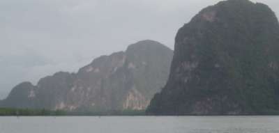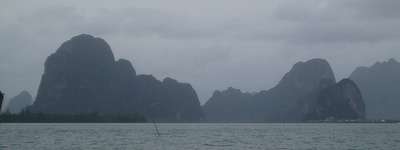 The next stop was Ao Nang Beach that served as the main faraang district of the area with plentiful tour shops and overpriced western food. With an hour of daylight left, I headed north towards Pha-Nga. The scenery on the way up was fairly incredible with dramatic limestone cliffs randomly popping out of the level earth in all directions; unfortunately, the high winds were nearly toppling me at every corner, so I was slowed to a crawl and lost the latter half of the landscape to darkness.