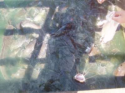 Afterwards we moved onto Roi Et. Here we ate at a Thai/Korean Restaurant which featured such delectable options as "Jellyfish Stew" but my dad had abruptly assumed a quasi-vegetarian stance that prohibited him from the more original menu items. In the morning we climbed up a 63m Buddha in an attempt to see a view of the town and then proceeded to the lake where giant catfish nearly stood upright at the edge of the water with mouths open just waiting for a hapless toddler to teeter into their waiting maws.
