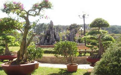 From the lake I powered up the hills to the north to arrive at "Love Valley"; actually I first stopped at "Dreaming Valley" which is a recently installed theme park designed to fool people searching for the other, more popular valley into buying an extra ticket. At this imposter valley I came across the worst con-job I am seen yet in my travels; I was rather disappointed as the Vietnamese are usually brilliant at this sort of thing and make you nearly certain that they believe what they're telling you to be true; it went something like this: ticket guy hands me the ticket for my bike and says "That will be 2000 dong," and I reply "But it says 1000 dong right here on the ticket!" and the ticket guy, thinking quickly, comes back with "Yes, but you see, I can only sell you two tickets - if you had two bikes it would... wait let me start over... you see, we don't have a ticket for bicycles, so I have to sell you 2 motorcycle...", by this time his friends were all laughing hysterically and I walked off to the park ticket office so he could have a few minutes to get his thoughts in order