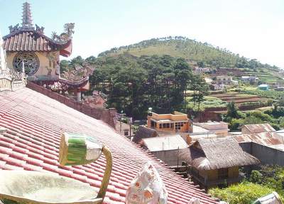 So I headed back west along a different road til I reached Gougah falls and followed the road up to Prenn Falls and Datanla Falls; it seems every waterfall in this region has been transformed into a grotesque tourist attraction packed with Vietnamese cowboys and Native American statuary. I somehow missed "Chicken Village" (a village where someone constructed a giant concrete chicken) but managed to eventually get to Langbian Mountain north of town for some incredible views.