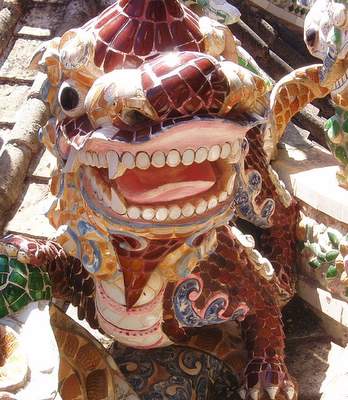 I started out heading east in search of Tiger Falls (thus named because someone stuck a big concrete tiger there) but somehow missed that and instead came to a really impressive pagoda that didn't seem to be mentioned anywhere. Next, I arrived in D'ran which had some hilltop temples of one sort or another; while I was photographing one of these, a local English teacher, who may or may not have been completely nuts, came and emphatically greeted me and invited me into his home; he informed me that there was absolutely nothing of interest in this neck of the woods and I was obviously very lost.