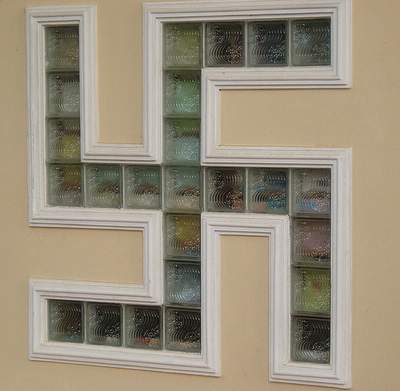 A stain-glass <one of those things that looks like a bacwards swastika>