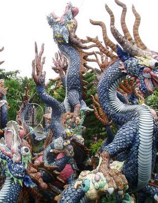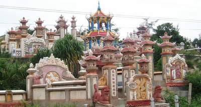 Coming from Thailand, I had been disappointed up til now with the apparent lack of elaborate temples, but on this island there was an elaborate pagoda quite literally every five to ten feet; the more affluent residents seemed to have built their own personal pagoda where you would expect a garage to be (perhaps it was just a really ornate garage). Further down the beach road was the "city of tombs" where families had struggled to beat their neighbors in the game of building excessively colorful graves for their dead relatives; though in the very same field, there were plenty of plots that were simply piles of sand.