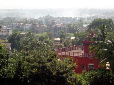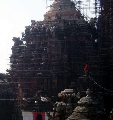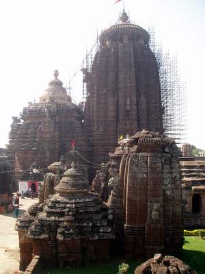The main temple in town is offlimits to foreigners but thousands of Indian pilgrims regularly file into the structure. For non-Hindis, there's a viewing platform a little ways off where you are required to pay a donation to some guy who may or may not have any claim to the thing; he has a guestbook where you are required to write the amount of your donation - he subsequently adds a zero or two in your script so future tourists will come to believe that a $20 donation is the norm for taking a photo (I have my doubts as to whether he has ever once been successful with this ploy). Nearby, I noted a line of three sweetshops whose names were preceded by "World-famous", "India-famous", and "Bhudaneswar-famous" respectively - I'd really be interested to see the figures for the relative patronage levels of these establishments.