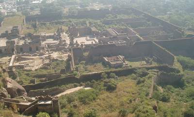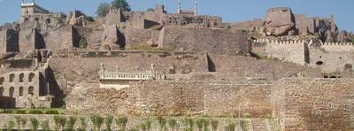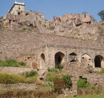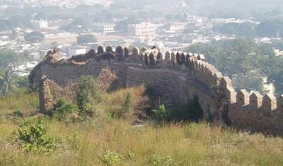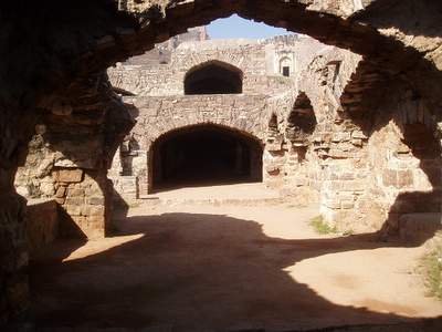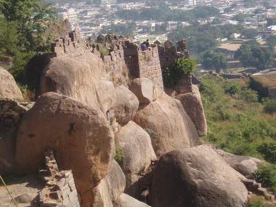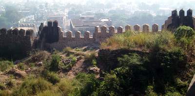 In the morning I spent an hour sorting out the bus situation and eventually found one that went to Golconda Fort. This was a very impressive, ancient structure where you were free to scramble around on the ramparts and gaze over the city from the heights of the central towers. Next, I took another 4 or 5 buses to get over to the fever hospital where I they put a big "Nagative" stamp on my file for Malaria. From there I went to a hilltop temple where they confiscated your camera so you couldn't get any shots of the surrounding city.