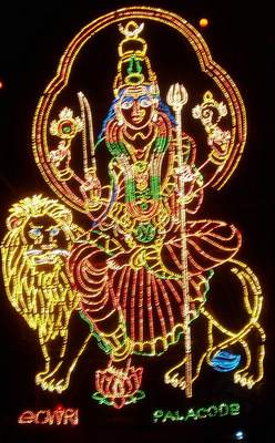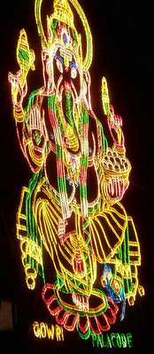I decided to walk home so I could admire all the christmas lights (mostly of Hindu deities) that were spread around town (this decision may have also had something to do with all the bus signs being in a foreign script). In one parking lot I noticed a 20m rock wall with all the routes still attached; I had half a mind to free-climb it, but for once I opted to ignore that half. A bit further down there were people riding camels around a square - this was some sort of children's festival and I was told I was too old to get a camel.