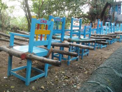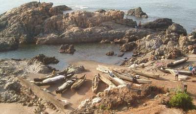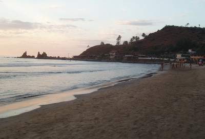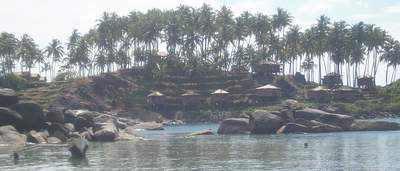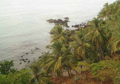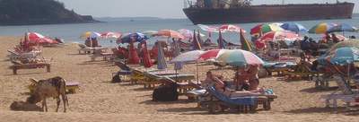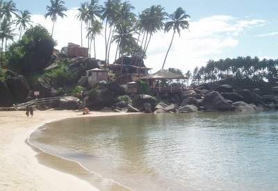 We got a general ticket on the next train two hours later. At the appointed time, a train pulled up to the station; we couldn't find a general compartment, so we jumped into an AC sleeper. Shortly after the train pulled away, a fellow passenger informed us that we had in fact boarded the wrong train and that we would no doubt be fined heavily. Since this was an express, it would likely not stop til well after our intended destination, so all there was to do was sit down and enjoy the ride. A waiter came by and offered to bring us a few extra breakfast omellettes provided we gave him a tip; this sounded like a great deal until he rejected our first tip (a very generous 50 rupees) and would accept no less than double that (the implication clearly was that this was hush money for not running to the ticket collector). The train stopped earlier than we expected, so we jumped off at the town of Karwar without the slightest inkling what the place was about; for some reason of which I'm not really aware, we decided to forget about the train that would be arriving shortly and take a taxi to the bus stand where we caught a ride to Canacona. When we reached that station, the girls decided that they would find a taxi to Palolem; I opted to hop on one of the buses that left every 10 seconds and never saw them again.