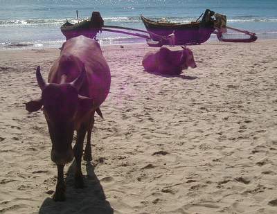 Purple cows on the beach