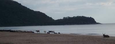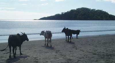 Since my previous experience with Indian beaches had involved piles of garbage, poo, and hordes of Indian tourists with firecrackers, I didn't have the highest of hopes for Goa. However, once I had breached the long lines of souvenir stands, restaurants, and umbrellas, I came upon an idyllic white sand beach with rocky cliffs on both ends; backpackers from the far reaches of the globe swam, sunbathed, and played v-ball - not a single Indian tourist could be found. I took a moment or two to savour this and then went to get lunch; I decided to have a super burrito at a place called Casa Fiesta (I figured with a name like this, it must be the real deal) - the side of jasmine rice detracted from the authenticity and they'd clearly never heard of mole sauce, but it was otherwise an excellent attempt.