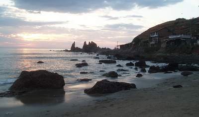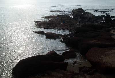 From there I sped through the narrow streets of Panaji's Portuguese quarter and then followed a number of confusing roads to Aquada Fort where they were shooting a Bollywood movie. Heading north, it was one continuous string of beach-side development; the restaurants ran the gammit from Russian, to Israeli, to American, and every patch of sand was covered in beach chairs and banana boats. In the last hour of daylight, I arrived in Arambol beach; one end featured jagged rock formations that perfectly framed the setting sun. The place was plagued with hippies doing all sorts of strange hippy stuff; apparently there are entire families of these long-haired weirdos who stop by here, park themselves at a guesthouse, and then just never leave.