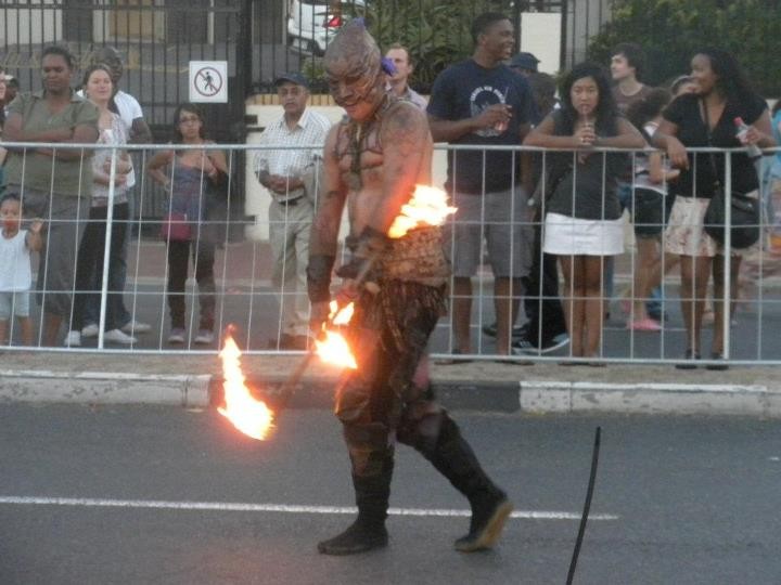 We found a legit African restaurant with huge plates of veggies, rice, beans and chicken for 30R and a nearby internet cafe for 5R/hour. On the net I discovered that Cape Town had a slow foods movement and found a Saturday farmers market. This turned out to be pretty much exactly like any high-end hippie market back in the States with local honeys, aromatic soaps, and veggie burgers. That night the city was hosting its third annual Carnival (only 7 weeks after Mardi Gras), which had the typical array of body paint, drunken revelers, and giant light-up crocodiles and flamingos.