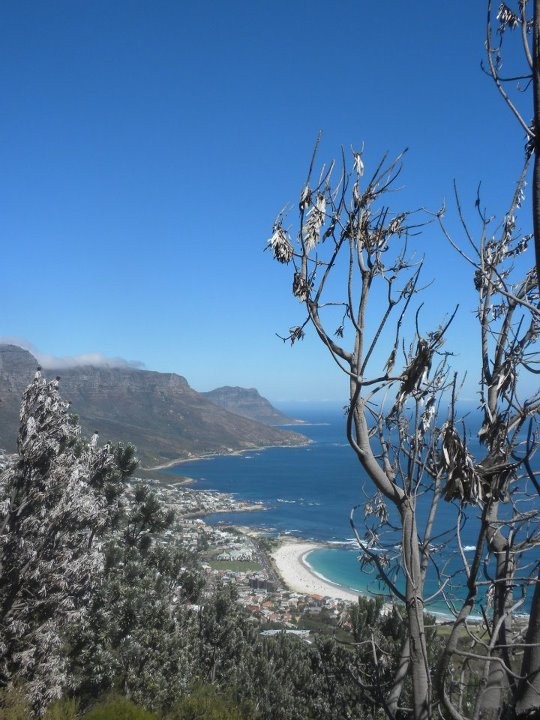 I had posted an ad on Couchsurfing a few days before announcing that we were in the area and looking for a place to stay. The only response I received was from a guy named Matt who lived 45 minutes out of town; he had no contacts or references, and couldn't actually offer us a place to sleep. All the same, we had nothing better to do, so we went to the central station and hopped on a train to Muisenberg. Several high school kids on the train blasted house music on their phones; I was really hoping for a full-scale dance party, but sadly only a teen and an aging superglue vendor showed off any moves. The train station was in a rather impressive setting, about directly on a perfect surfing beach and half a kilometer from an epic mountain. The couchsurfer, Matt #2 (not to be confused with his roommate, Matt #3, or Matt, Original Style), turned out to be a cool guy and took us bushwhacking up the mountain to climb on some boulders. He led us racing up towards a saddle, which supposedly had views of both oceans, but a little ways short of the top, he sat down for a smoke, lamenting how there was no time to reach the lookout and return by nightfall. We returned to the station, said our goodbyes and caught the second-to-last train at 7:30.