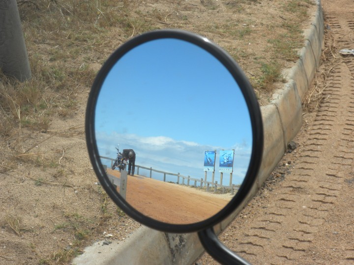 The nearest town on the GPS was Marme; we found the lone restaurant there, which doubled as an auto repair shop. The mechanic didn't know anything about motorbikes but ran down the road to find a guy who did. This guy hopped on and sped around the corner; we wondered if we would every see him or Matt's stuff again. A few minutes later, he returned and reported that there was nothing wrong with the bike. This came as a great relief to us. To resolve the next pending issue, we asked where we might find a petrol shop. There were none in Marme, but Atlantis, 7km down the road, had a few. There were a number of road signs to the Lost City of Atlantis, making it surprisingly trivial to find. We got gas and asked for directions to a mechanic; he too knew next to nothing about bikes and recommended that we return to Cape Town.