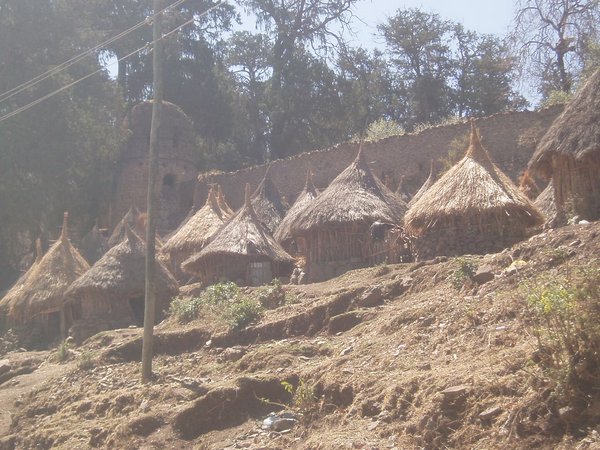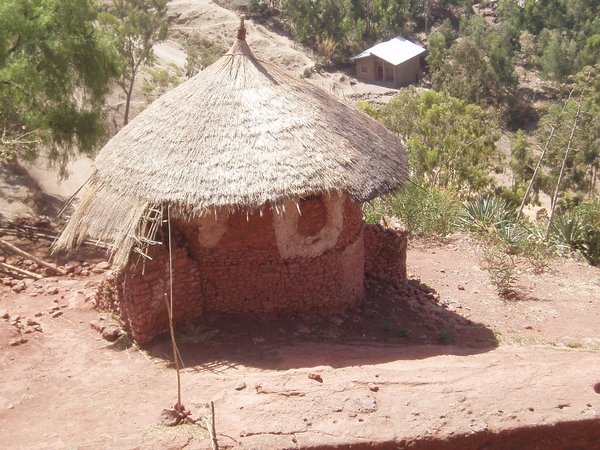 After the second spare had been affixed, we continued along the last few twisty miles to our destination. In one place, we stopped at a village and a horde of rowdy villagers boarded, one armed with a large rifle. The ticket seller had a heated discussion with them for some minutes and they disembarked several hundred meters later. We reached Lalibela around 4 and a tout led myself and the other two foreigners up to the hotel where we had already intended to stay; fortunately for us, he knocked 20 birr off the going rate in his effort to persuade us.