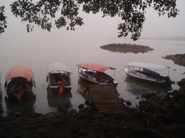 I had arranged to meet the city folk from the day before at 7 near the dock, but they didn't show and I was soon snatched up by the touts who claimed they had a group leaving at 8. This turned out to be my group, but rather than being allowed to just pay my share of the boat, I was charged a highly arbitrary $9 (probably double the correct value of my seat), and what was worse, shortly after we were under way, I discovered that we would be going to about half as many places and using half the engine power as had been promised.