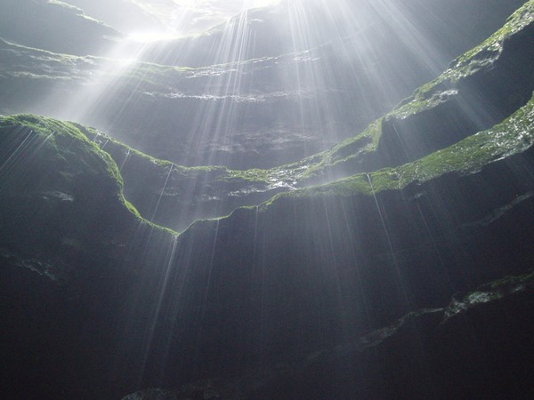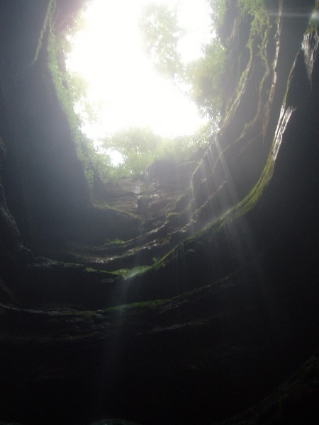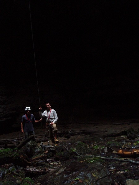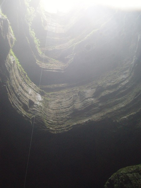Piet rappelling down into pit