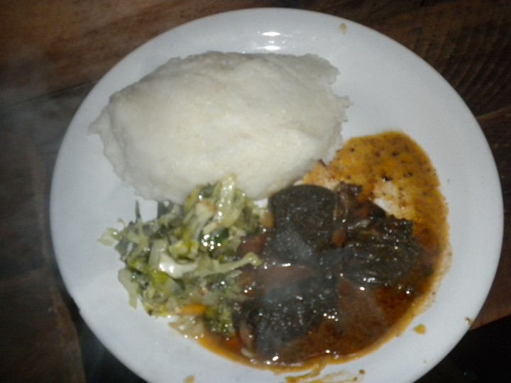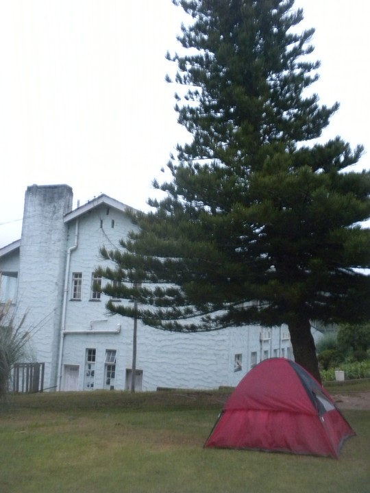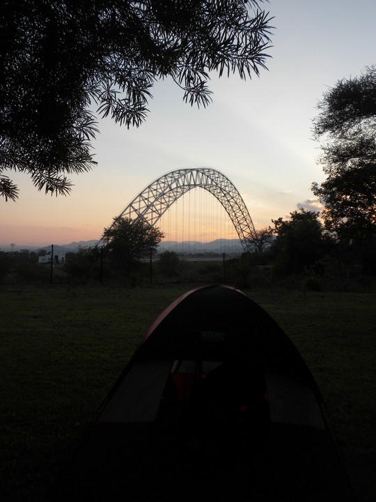At 4, it seemed egress might finally be possible; we said our goodbyes and made a slow retreat down the muddy trail back to Chimanimani village. The daylight was already fading and it was a good two hours of riding to the next town on the map, so we had little choice but to find a place to stay in the village. We visited the lodges listed in the guidebook; at two, the staff was strangely absent, and the other was reportedly full. As a last resort, we went to the fancy Chimanimani Hotel to beg; $15 got us a tent spot and a bathroom with a very nice $90 room attached. We returned to the food stall of the previous day to get offals with sadza and cabbage; a blackout had hit, so the staff used phone backlights to cook and to light up our food. This was probably for the best, since I can't imagine cow stomache looked could look particularly appetizing. Though a couple Zimbabweans had told us it was their favorite dish, offals turned out to be fairly vile. The rain began again and our tent immediately soaked through as it had before, but we could care less this time around, since we spent the night lying on the floor of our bathroom suite.