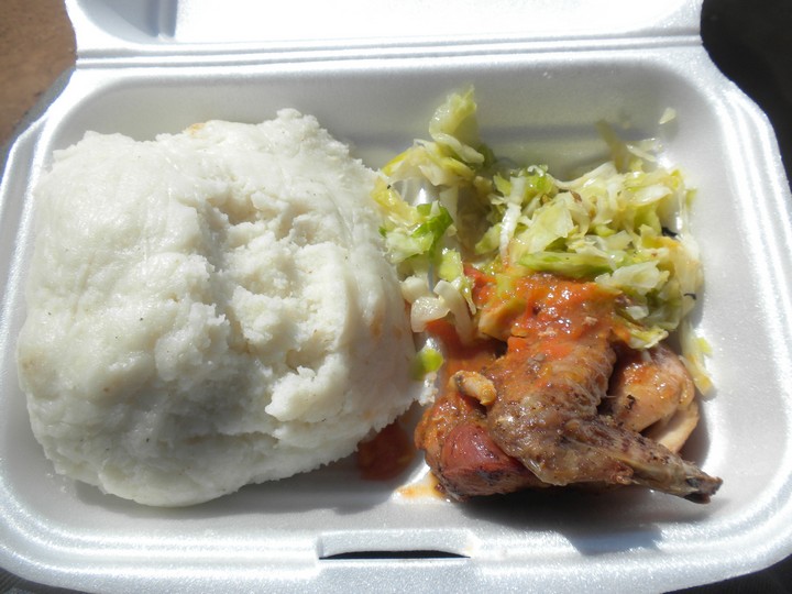 I wanted some bananas for breakfast; probably two or three would've been just fine, but this wasn't an option in the town market. The only possible quantity in which one could procure bananas was 30 for $1. I secured these loosely to my bike and managed to eat about a tenth of them before losing them all to a speed bump or pothole along the way. A mist hung over the mountains and the high passes were downright frigid; all of our extra layers, which had been nothing but excessive up until this point, were now woefully inadequate, and we resolved that, if ever it should begin to rain, we would have no choice but to pull over and set up our tent. At every road junction, farmers with bananas, avocados, and apples would run to us to try to be the first to satisfy our obvious need for absurd quantities of perishable foods; I did ever so briefly consider the fifteen avocados for a dollar deal. Reaching the village of Chimanimani, we walked through a butchery to a wooden shack placed interstitially between two storefronts; there we found some of the best chicken I'd ever tasted, accompanied by sadza and spicy cabbage for (drum roll) $1.