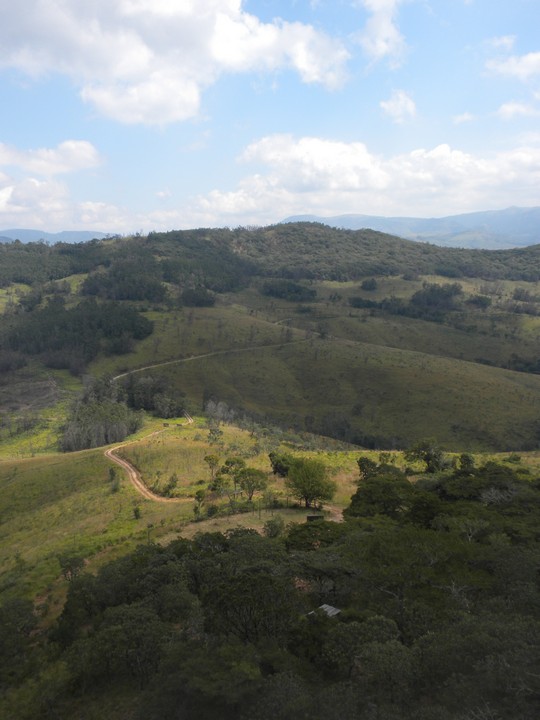 A long, rough 4wd road took us into the national park. Since I hadn't managed to withdraw any money recently and we were down to our last fifty bucks, I told the ranger we might not be able to afford the $10 entry fee and $8 per person camping fee; not about to turn away 50% of his business for the day, he dismissed the issue and said we could figure it out later. We tried our best to follow the trail to the ridgeline but immediately got lost and did a fair bit of bushwhacking up the cliff face. At the top, we found an extensive boulder field and spent some time seeking out routes on a rock we labeled 'the dragon'; we lamented not strapping a couple crashpads to the backs of our bikes. Just beyond this was a cabin complete with rocking chairs, running water, toilets, and mattresses that probably hadn't been cleaned in twenty years. An old woman sitting there explained that her friends had gone off to look for frogs, but she had no idea where the trails were. We followed a couple fairly convincing trails, which ended abruptly in streams, before discovering one that dropped straight down from the front porch and into the valley below.