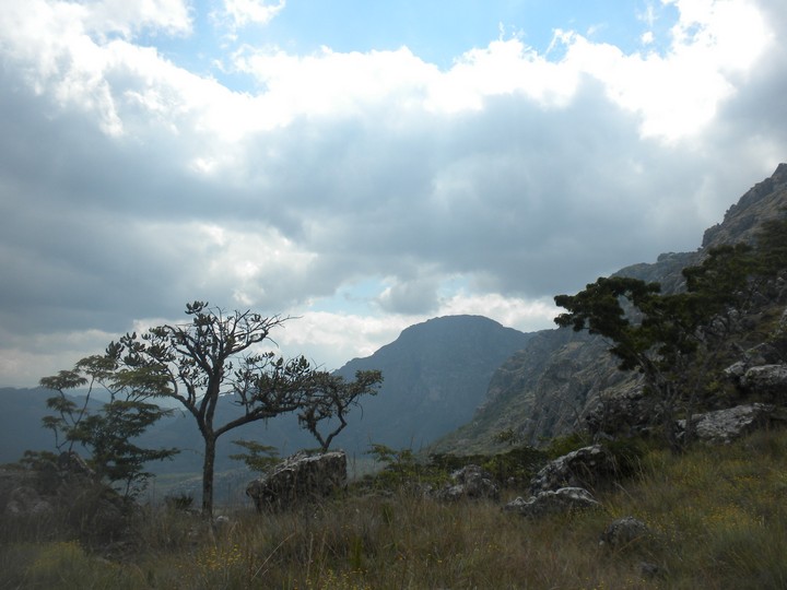 We went to a waterfall and 'cave', which turned out to be nothing more than an overhang, and then bushwhacked to Skeleton Pass, a route once used by guerillas to travel between Zimbabwe and Mozambique. At the base of the trail up to the pass sat a shack with five border guards and/or park rangers; one was completely naked and bathing in the middle of the trail; we exchanged the usual pleasantries as we awkwardly edged around him. With about an hour of daylight remaining, we raced up to the border, then returned at a fast clip to the cabin. The backpackers there advised us to stay, but we weren't too keen on spending the night without our sleeping bags, so we pressed on to our campsite. My headlamp was dead, but using only Matt's we managed to find our way and not trip over a cliff; surprisingly, we managed to follow the trail much more faithfully than we had in the daylight. Our gas was out, so we built a fire to cook pasta and curried vegetables. The rain started a few hours later and we soon discovered how truly rain-unworthy our cheap tent really was.