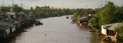 I usually find vegetarian fare by seeking out meat which looks good enough to eat; actual Vietnamese meat is usually full of fat and odd bones, and quite often covered with skin and/or some sort of hair - imitation meat, however, looks like the cuts you'd get back home. I was, however, fooled by a veggie joint in Chau Duc that had expertly inserted sticks of lemon grass into the soy to serve as inedible bones and somehow created a texture almost indistinguishible from chicken fat - even after I was finished, I wasn't entirely sure I had not in fact eaten meat. After dinner I ran into three French guys (on another variation of my tour) who I'd last seen at Luang Prabang in Laos; this beat the previous record of the Irish girl, last seen in Sam Neua, that was staying across the hall in my Saigon hotel.