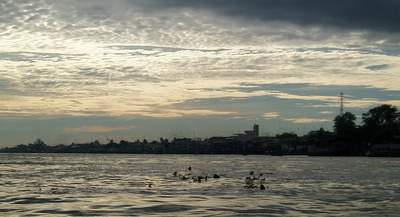 For lunch we had fried rice and spring rolls (who could've guessed?) - we opted not to pay the extra to get the local specialty where they served an "elephant-eared fish" deep-fried and standing on its tail - and then we boated a bit further to a massive fruit sampling accompanied by traditional music. Our group included, among others, a guy from Tallahassee, a D.C.er (sure, email me the real name for those folks), and two Montanians; the last group was on a "semester-at-sea" program with 650 other Americans where they circled the world in a cruise-ship (complete with swimming pool and basketball courts), stopped at random ports (South Africa, Chennai, six other places I don't remember) and got to do whatever they wanted for 5 days.