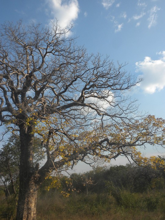 When we finally got on the road, there was only enough daylight to make it 100km down the highway to Hwange. The autumn months had brought out a range of reds and yellows in the trees and it made for a beautiful ride. Though Hwange was a decently sized city, we shortly found that it had no guesthouses or camping on offer and everyone pointed us to the Baobab Hotel. This turned out to be a luxury establishment on the top of a mountain with $90 rooms. The receptionist was none too keen on giving us a spot on the lawn, but with enough prodding, she did refer us to a social club in town that she thought might be able to help us. This place turned out to be a dorm and bar for the power company, and they had no space for us, but the bartender eventually identified an employee who lived across the street and agreed to let us camp in his yard. We bought him a few drinks, went and chatted with his wife and children, and slept on grass far softer and fluffier than anything we had encountered thus far or would find down the road.