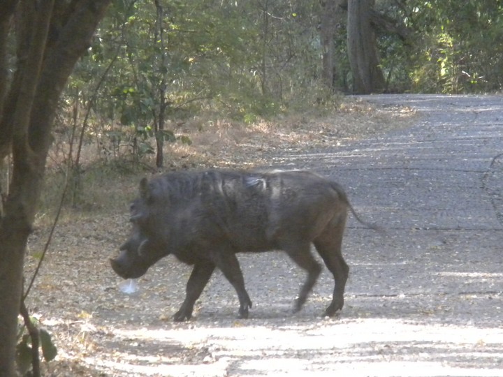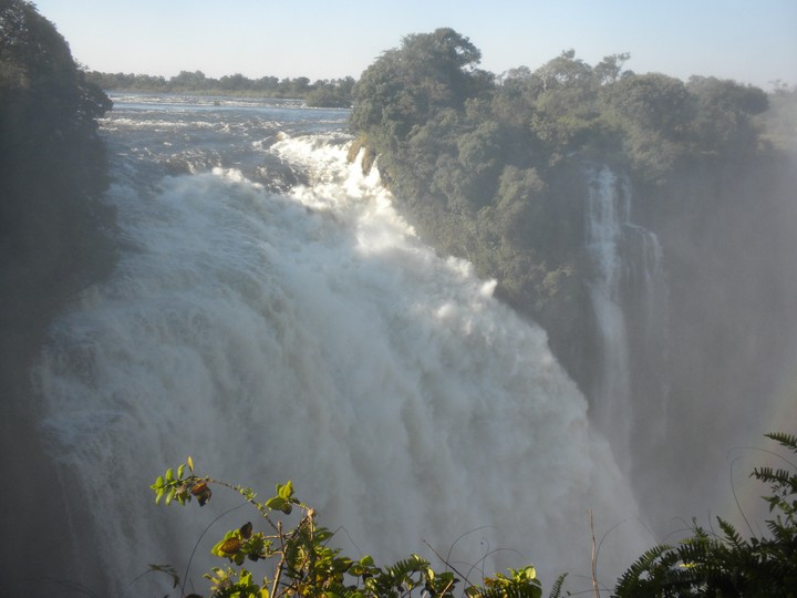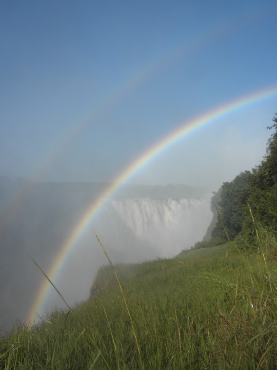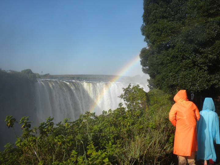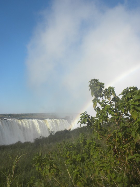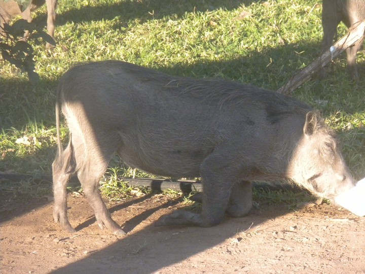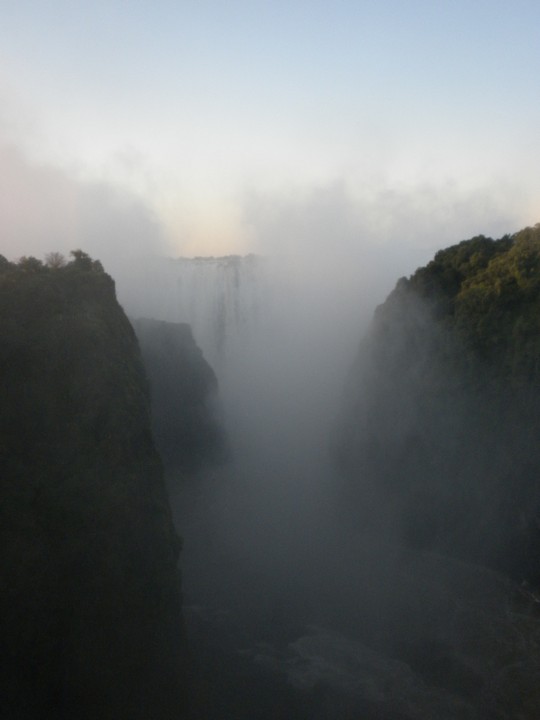 We had two hours until sunset, so we headed for a nearby waterfall that some locals had told us about. Leaving our hostel driveway, we noticed a pair of warthogs rooting around on the lawn across the street. On the way, we stopped by the Big Tree, which was a large baobab guarded by two tourist police; they explained the history of the spot (which I would gladly relate here had I not neglected to remember any of it) and showed us some gourds that grew nearby which were traditionally used for penis enlargement. The park admission fee was $30 and allowed access to a number of lookouts that let you to take in the falls piecemeal, and often get soaking wet. The trails were full of poncho-clad Japanese and Zimbabweans. Considering all the not-so-water-resistant valuable stuff on my person, a $3 poncho might have been a wise investment. While the falls were awe-inspiring, none of the lookouts really provided an all-encompassing view, and the thick mist hovered over much of the trail. And it all felt a little too Disney Worldesque. At the risk of sounding like one of those people who, on principle alone, denies the validity of beaten track destinations even in the face of universal acclaim, I would say Rucana Falls (when the dam is open) is the better option, and, at the risk of sounding like an arrogant American, I'm going to claim that Niagara (in winter, from the Canadian side), is better still.