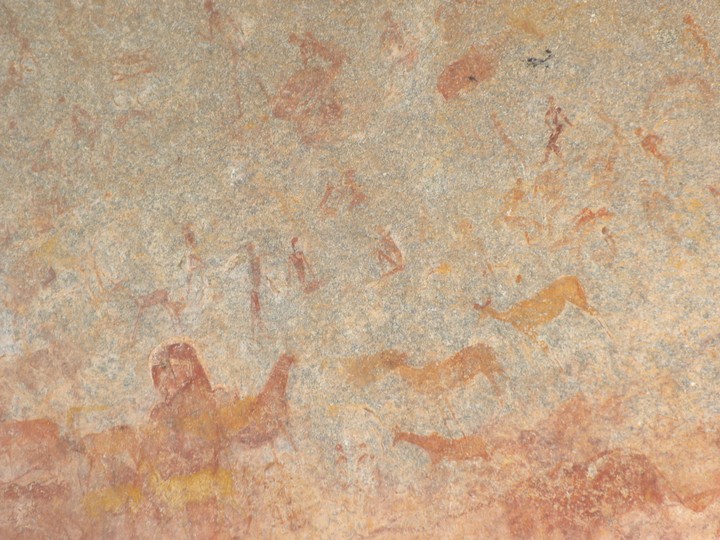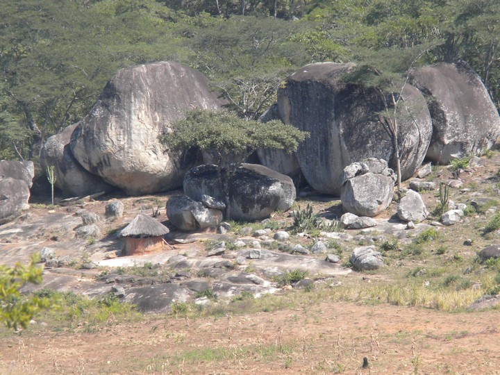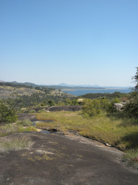 Back at camp, we made scrambled eggs and okra, then set out on another superbly fun and scenic road along Lake Kyle. Many a time we considered stopping at a random village, introducing ourselves, dropping off our stuff, and spending the rest of the day scrambling over the endless sea of rock that beckoned us at every turn. A star on our map and a highway sign led us to believe there was a cave of some interest 8km down a gravel side road. There was no further signage, so once the indicated distance had passed we just started asking random villagers. We wandered across a few farms and met Pete, who had the previous year bought several acres of farming land in a stunning valley, a nice brick hut, and a shed for the grand sum of $250. 'Zimbabwean farmer' was suddenly a rather appealing and very realizable career path. Pete directed us to return to a point a few kilometers back and ask someone else. When we believed we had arrived at the prescribed point, we found Prince, a youth from Harare who claimed to know the caves. He and his two young cousins guided us on a mile hike up the road to a boulder pile, where he directed us to an overhang that contained a handful of pretty standard bushman paintings. We had our suspicions whether this was actually the advertised cave, but we gave him a $2 tip anyway and returned to the highway.