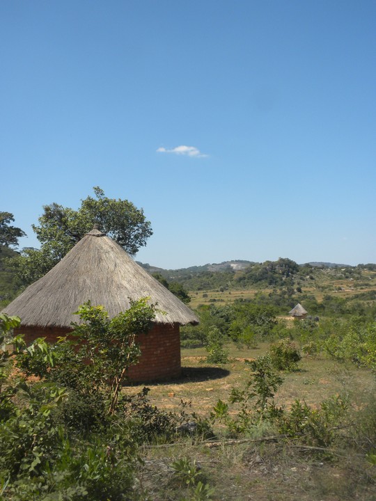 We were determined to stay in a village and so pushed right on past the town of Birchenough Bridge and up into the mountains. Dusk approached and we had yet to encounter a single quaint, traditional village; we stopped at a line of three bottle shops with a crowd of people out front to ask for advice. Not surprisingly, most of the men were reasonably wasted and offered little in the way of constructive input; one ranted about how much he hated Americans and the others either assured us that our plan was 100% safe and we should not hesitate to continue on and approach the next village we spotted, or told us that the idea was ludicrously stupid and insisted that we return to the town immediately and get a room at the hotel. When a non-inebriated guy in a pickup truck pulled up and strongly advised us to return to the lodge, we reluctantly assented and returned back down the mountain with little more than the light of the moon to guide us. The hotel was under construction and lacked certain amenities to which we had become accustomed - like running water and electricity - but for $5 each, they let us set up our tent on the lawn next to the empty pool.