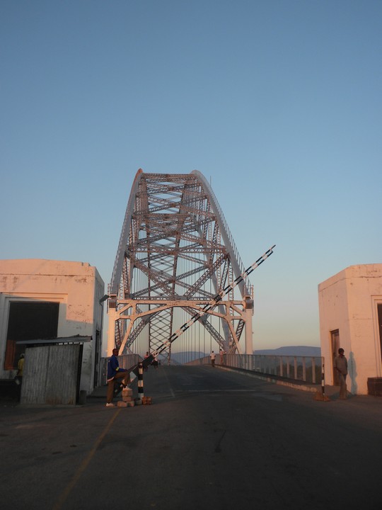 At one point on the ride back, I spied some big rocks that I reasoned would make an excellent spot to climb and watch the sunset. This split-second distraction that this thought provided caused me to momentarily forget about the upcoming turn and drop off onto the shoulder; as I hit the deep sand, I panicked and slammed on the brakes. This led my bike to slide sideways and me to take a flying somersault into the sand some six feet ahead. Miraculously, I came out of it with only a few abrasions and some new holes in my jeans. The bike was another story; the handlebars were twisted, the gear box was shattered and just barely hanging on by the ignition column, the headlight and casing were destroyed, the tachometer cable (my only remaining method for guessing my speed) snapped and the gear lever was twisted onto the foot peg. Somehow it still started, and once we bent the shifter back into place, I could even change gears. When we reached the police checkpoint, the officer just waved us through as if my bike were actually somewhere close to roadworthy.