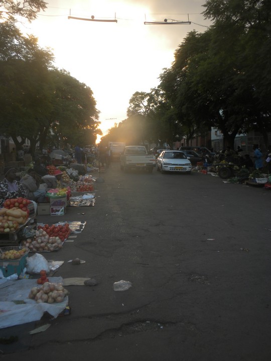 With a million people, Bulawayo was the by far the biggest city we had seen since Cape Town. Traffic was heavy, and was made all the more interesting by the fact that most of the lights were malfunctioning. We stopped by a massive street market which had tons of dirt cheap fruits and veggies, including avocados for 2R. We set up camp in the yard of a hostel for $10 each and cooked a dinner of pasta and ox-tail flavored soy chunks; Matt nixed the idea of adding the dried caterpillars I had picked up in the market earlier that day.