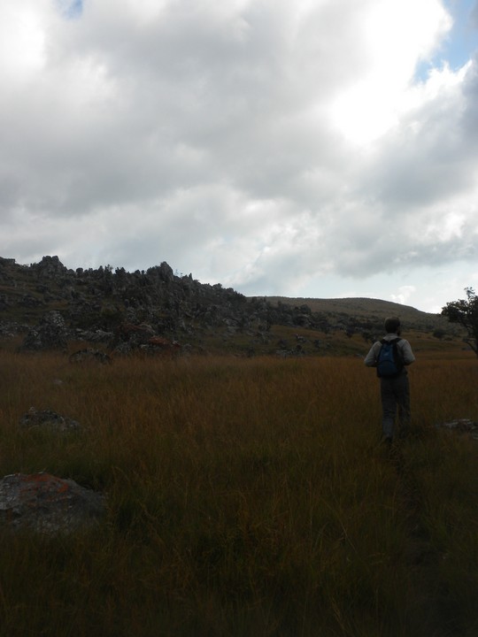 We went to a waterfall and 'cave', which turned out to be nothing more than an overhang, and then bushwhacked to Skeleton Pass, a route once used by guerillas to travel between Zimbabwe and Mozambique. At the base of the trail up to the pass sat a shack with five border guards and/or park rangers; one was completely naked and bathing in the middle of the trail; we exchanged the usual pleasantries as we awkwardly edged around him. With about an hour of daylight remaining, we raced up to the border, then returned at a fast clip to the cabin. The backpackers there advised us to stay, but we weren't too keen on spending the night without our sleeping bags, so we pressed on to our campsite. My headlamp was dead, but using only Matt's we managed to find our way and not trip over a cliff; surprisingly, we managed to follow the trail much more faithfully than we had in the daylight. Our gas was out, so we built a fire to cook pasta and curried vegetables. The rain started a few hours later and we soon discovered how truly rain-unworthy our cheap tent really was.