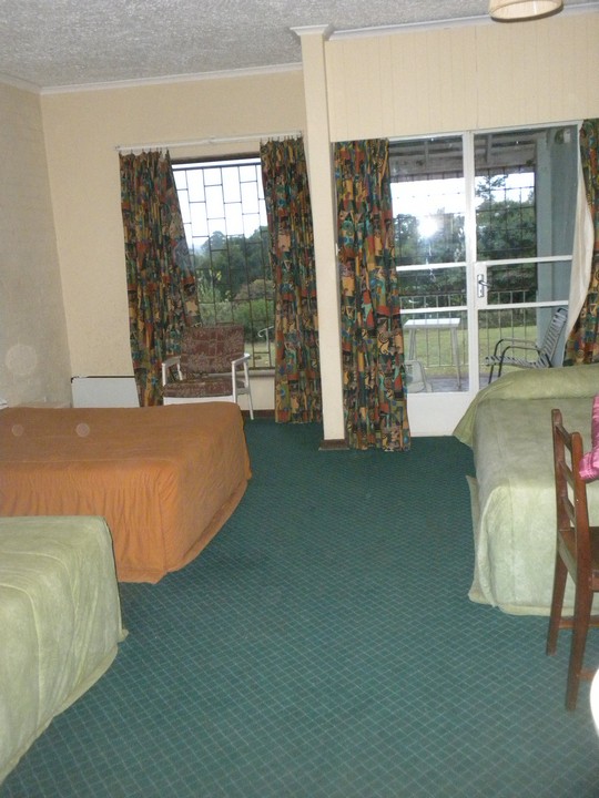 At 4, it seemed egress might finally be possible; we said our goodbyes and made a slow retreat down the muddy trail back to Chimanimani village. The daylight was already fading and it was a good two hours of riding to the next town on the map, so we had little choice but to find a place to stay in the village. We visited the lodges listed in the guidebook; at two, the staff was strangely absent, and the other was reportedly full. As a last resort, we went to the fancy Chimanimani Hotel to beg; $15 got us a tent spot and a bathroom with a very nice $90 room attached. We returned to the food stall of the previous day to get offals with sadza and cabbage; a blackout had hit, so the staff used phone backlights to cook and to light up our food. This was probably for the best, since I can't imagine cow stomache looked could look particularly appetizing. Though a couple Zimbabweans had told us it was their favorite dish, offals turned out to be fairly vile. The rain began again and our tent immediately soaked through as it had before, but we could care less this time around, since we spent the night lying on the floor of our bathroom suite.