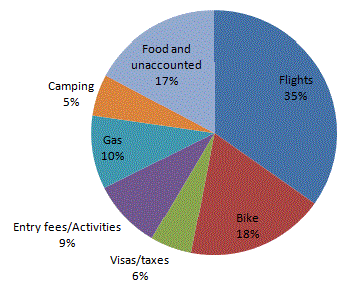 Negating flights and bike expenses, this comes out to about $40/day