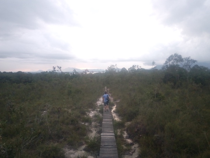 The trail repeatedly crossed into the Indonesian state of Kalimantan, but there were no border guards. We had been told by several, likely very racist, Malaysians that this neighboring territory was full of dangerous tribespeople, who were ready to rob, murder, and possibly eat any hapless traveler that might wander through their villages. Fortunately, there was a formidable precipice that kept the savage hordes from overrunning the resort.