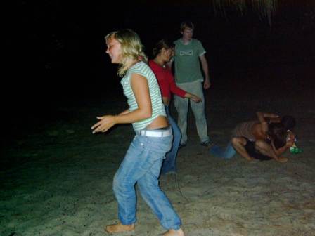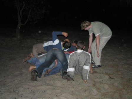 We set up camp along the beach again and cooked up a delicious spread of chicken stir fry and fruitcake. One of the more intoxicated members of the group came up with an ingenious game where a bag of potato chips was placed in the middle and a team lined up on either side. Each member of the team would be assigned a number and when that number was called, one from each side would race to the middle to grab the chips; if you didn't get the chips, you simply had to beat the crap out of the other person and steal them – sometimes the rest of the team could rush forward and join in the carnage. A play was over as soon as someone sustained a serious injury (such that they were unable, due to unconsciousness or broken limbs, to move back to their goal). A chipped tooth signalled the end of the first half. We then went to a neighboring campsite where an Irishman was entertaining a sizeable crowd with a delightful, thoroughly unintelligible jig.