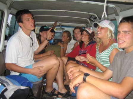 In the morning we grabbed a few more pancakes, assembled our gear, got our food ration, and packed everything on top of our 4WD. After an hour of preparation, we all piled into the truck and triumphantly turned the key; the ignition made just a clicking sound and so we watched forlornly as the five other groups drove off to the island without us. We waited another two hours while a mechanic threw in a new starter motor, then we were off (though the speedometer was broken and one of the doors didn't open). We had been given bad directions and got a bit lost on the way to the barge, but we put our heads together and managed to get to the launch 20 seconds before the last boat of the day departed.