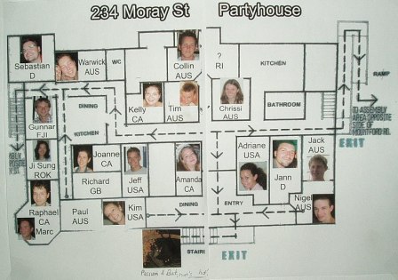 I next walked down through the botanical gardens that held tons of tropical plants, birds, and giant lizards, and proceeded to QUT which is immediately adjacent to it. Here I got plugged into free internet and began the painful task of getting acclimated. The first huge adjustment was the phone system - to make a local call costs a minimum of 30 cents (even from a home phone) and if you need to call a mobile (and you will, because no one uses land lines here) it's going to run you about a buck a minute; this was a bit of an irritation since I would need to make about 300 phone calls in the next week. At the accommodation office, they provided a list of a few hundred options in several dozen different suburbs that I could neither locate on a map nor pronounce. After a few days of walking around to random spots, I discovered a house in the neighbourhood of New Farm; this was a quiet spot a hundred meters from the river that was only 5 minutes by jet boat from the city. Since property values here are rather high, I shared the property with 29 people from various walks of life; it's an interesting environment, since each day when I walk through the door I meet someone new; on two occasions, I met someone on the ferry only to discover shortly after that he/she was living in my house.
