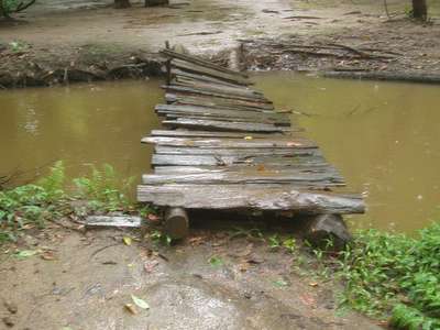 I reached Sai Yok Yai National Park about 30 minutes before dark; I had been told that the ticket I had purchased earlier would be good here, but I didn't want to waste precious daylight trying to explain this in Thai, so I went with the old-fashioned approach of driving past the booth at 50km/hr. I don't know if I actually found the waterfall or not; following signs for various lookouts, I ended up in backyards where I was chased by vicious attack dogs. It was too late to visit the “Bat Cave", which is unfortunate since Batman has always struck me as a swell guy and would no doubt put me up for the night.
