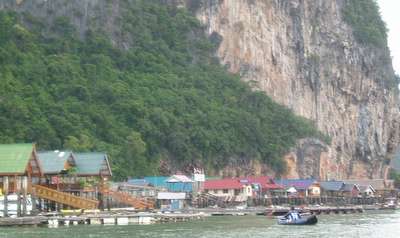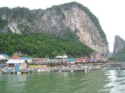 The next morning, I set off at the crack of dawn for the pier where I could supposedly arrange a boat trip to the bay. Unfortunately, the signage was at its usual standard and I ended up in some random fishing village rather than the tourist port. The locals were more than happy to rent me a boat and were quite insistent that no other tourists would arrive to share the costs (they didn't bother to mention why) so I ended up getting a private trip on a long-tailed boat for 700 baht – this would've been quite a decent deal (the going rate being 1800) had I actually had any desire to have my own boat. We visited a Muslim fishing village where houses on stilts backed up against a sheer limestone wall; it seemed a bit over-touristed as the main alley was lined solely with souvenir shops and seafood restaurants; my driver was terrified of the prospect of going deeper into the shacks to see the mosque and other more authentic attractions. Next we drove through a cave and proceeded on to the famous island featured in “Man with the Golden Gun" before going by a rock shaped like a poodle and heading back to port. I had got them to agree to a 4-hour tour and although there were plenty of islands to fill this time, I only actually knew the name of two of them; I was a bit afraid that the driver would simply go extra slow to kill the time, but he didn't seem particularly concerned with such technicalities as honoring the agreement, so we finished in an hour and a half; the people I had given my money to were mysteriously absent upon my return.