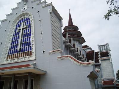 In the morning I stopped by the huge pink Danang cathedral which was filled far past capacity (with a few dozen people on stools outside) for the 5am Mass (the standard time for Vietnamese churches - would Catholicism exist in America if this were the only service offered?). I grabbed breakfast at a stand serving up purple porridge - I later discovered that this was one of many such stalls in the city which serves baby food to mothers with infants - nevertheless, it was tasty and had all the nutrients a growing boy needs.