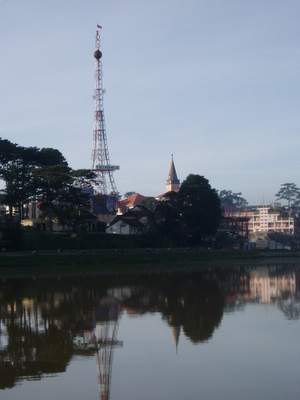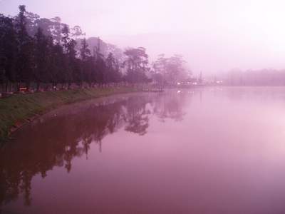 As darkness fell, we cleared the last of the arms of the storm and sped on into the night. For some reason we chose to stop to eat at a place with no power and I somehow managed to order cold bean sprouts and rice. We arrived at our destination at 4:30AM; fortunately the market was already in full swing and I was able to procure a host of cheap local specialties. I had earlier read about a 7km walk around the town lake, which had earlier seemed like a silly waste of time, but at 5 in the morning, I honestly couldn't think of a single better thing to do. Dalat seems to be a remarkably beautiful town with cool temperatures, lush evergreens and vibrant flowers.